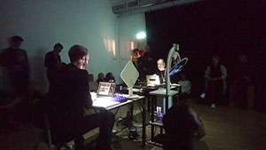 In this new audio-visual performance, based on the large light installation Totem, the dynamic light visions of Moholy-Nagy meet the algorithms of artificial life. Salter and Saunier use custom sensor-based instruments in collaboration with neural networks used in Totem to create surprising luminous/sonic actions.