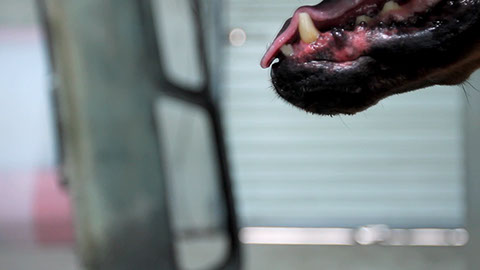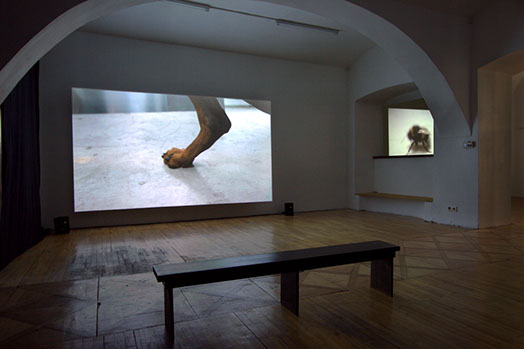 In a car workshop between the pristine surfaces of car parts and archetypes of mass production, a construction of power is unfolding. A Doberman Pinscher and its owner are the protagonists. The camera floats through the space frequently encountering a dog posing in standstill, commanded by a disembodied voice coming from somewhere in the workshop. A Doberman is a special breed, it is constructed out of many different types of dogs for the purpose of guarding, often used by police or military. It is specifically gracious, loyal, and potentially aggressive to strangers. It needs severe training. Both the owner’s and the dog’s consciousness are formed within this relationship. By the obedient appearance of the dog, it seems to concede to the rules it’s been given. But by knowing the rules it starts to gain power itself. In the constant intermingling of the concentration on the dog’s behavior and the hypothetical assumption of what the dog might do, we recognize a ‘manifest’ and a ‘scientific’ vision, being different but in continuous movement with one and another.